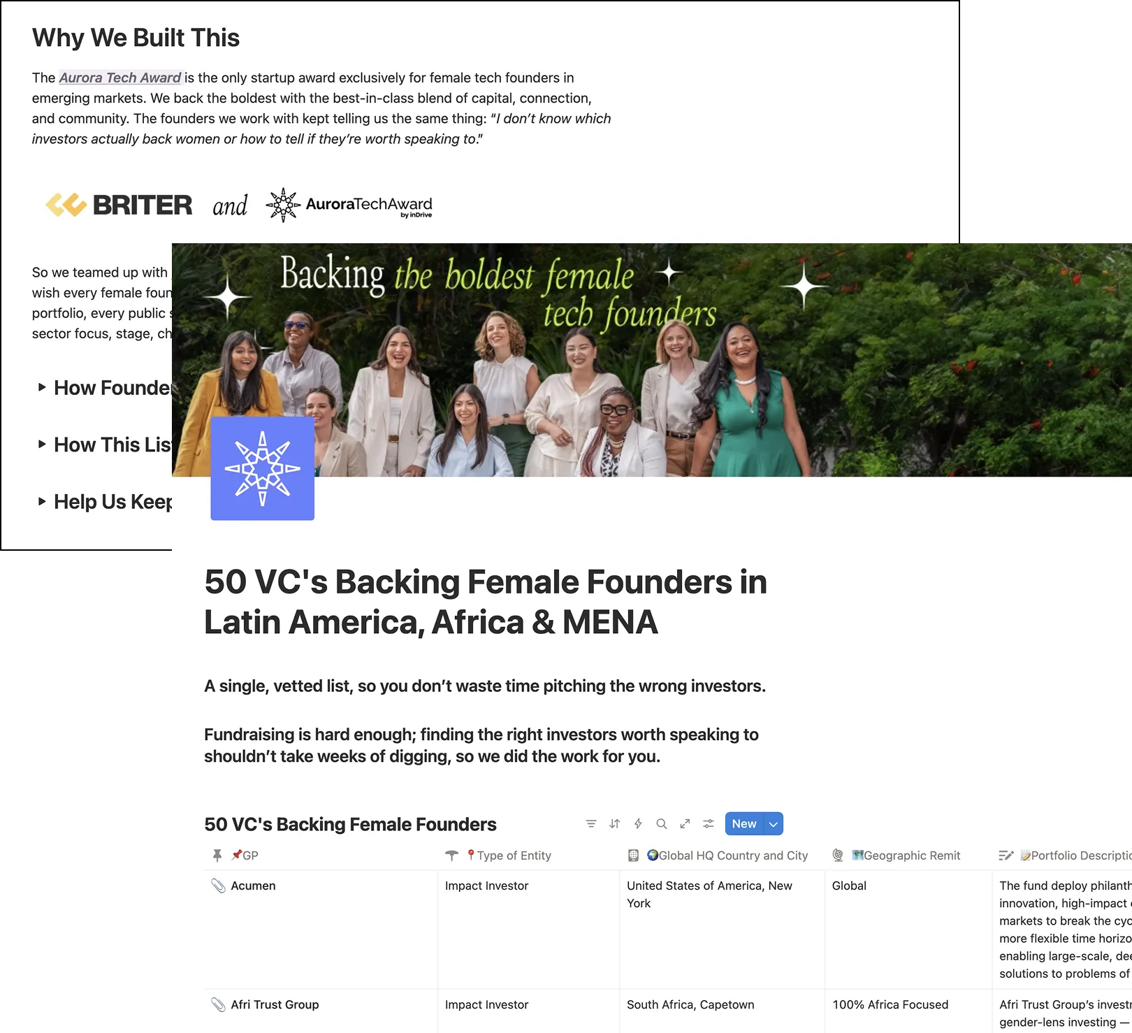 We partnered with Briter, a leading business intelligence firm, to map investors in emerging markets who back women-led companies
